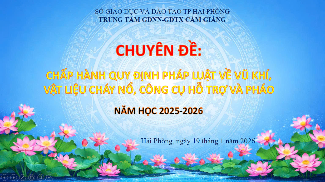 Ngày 19/01/2026 ĐTN Trung tâm GDNN-GDTX Cẩm Giàng xã Mao Điền thành phố Hải Phòng tổ chức chuyên đề: Chấp hành quy định pháp luật về vũ khí, vật liệu nổ, công cụ hỗ trợ và pháo.