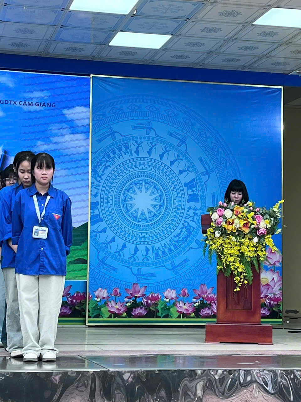 Phát biểu chỉ đạo, cô Nguyễn Thị Nguyệt – Bí thư Chi bộ, Giám đốc Trung tâm đã gửi gắm niềm tin yêu và kỳ vọng lớn lao vào thế hệ trẻ GDNN-GDTX Cẩm Giàng. Cô nhấn mạnh: “Thanh niên không chỉ học kiến thức, mà phải học cách làm chủ công nghệ và rèn luyện đạo đức để xứng đáng với truyền thống 95 năm vẻ vang của Đoàn.”