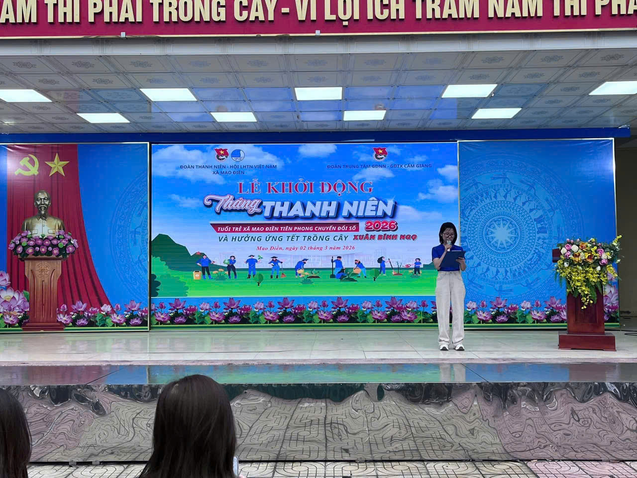 Phát động tại buổi lễ, đ/c Trần Quỳnh Hoa – Bí thư Đoàn xã Mao Điền đã chính thức phát lệnh khởi động Tháng Thanh niên 2026. Với chủ đề “Tuổi trẻ tiên phong chuyển đổi số”, đây là đợt thi đua cao điểm để mỗi đoàn viên khẳng định bản lĩnh, trí tuệ trong kỷ nguyên số.
